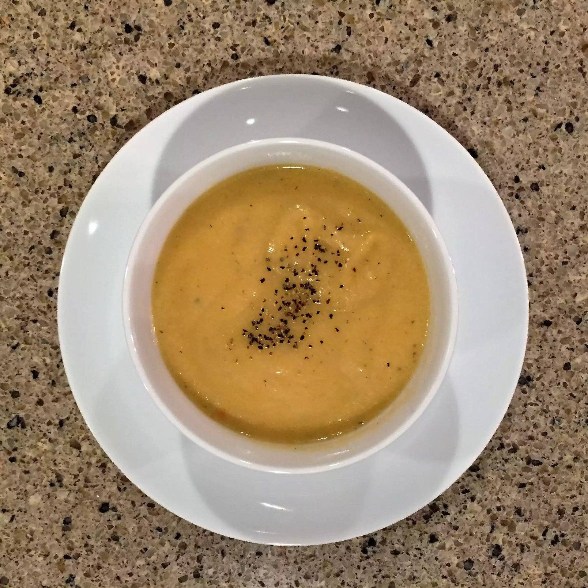 Puree until smooth: Remove from heat and remove bay leaves. Either using an immersion blender or standing blender (in small batches), puree the soup mixture until completely smooth.