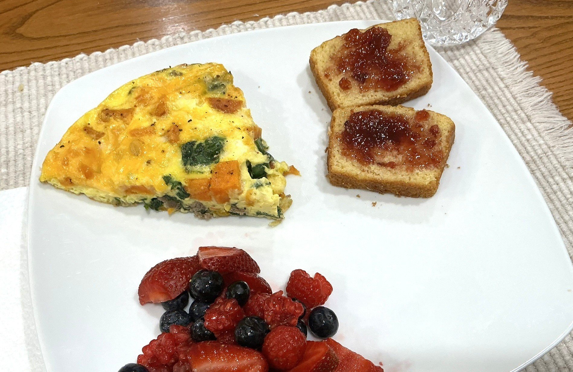 Bake for about 20 minutes until the frittata is no longer wobbly in the center.
