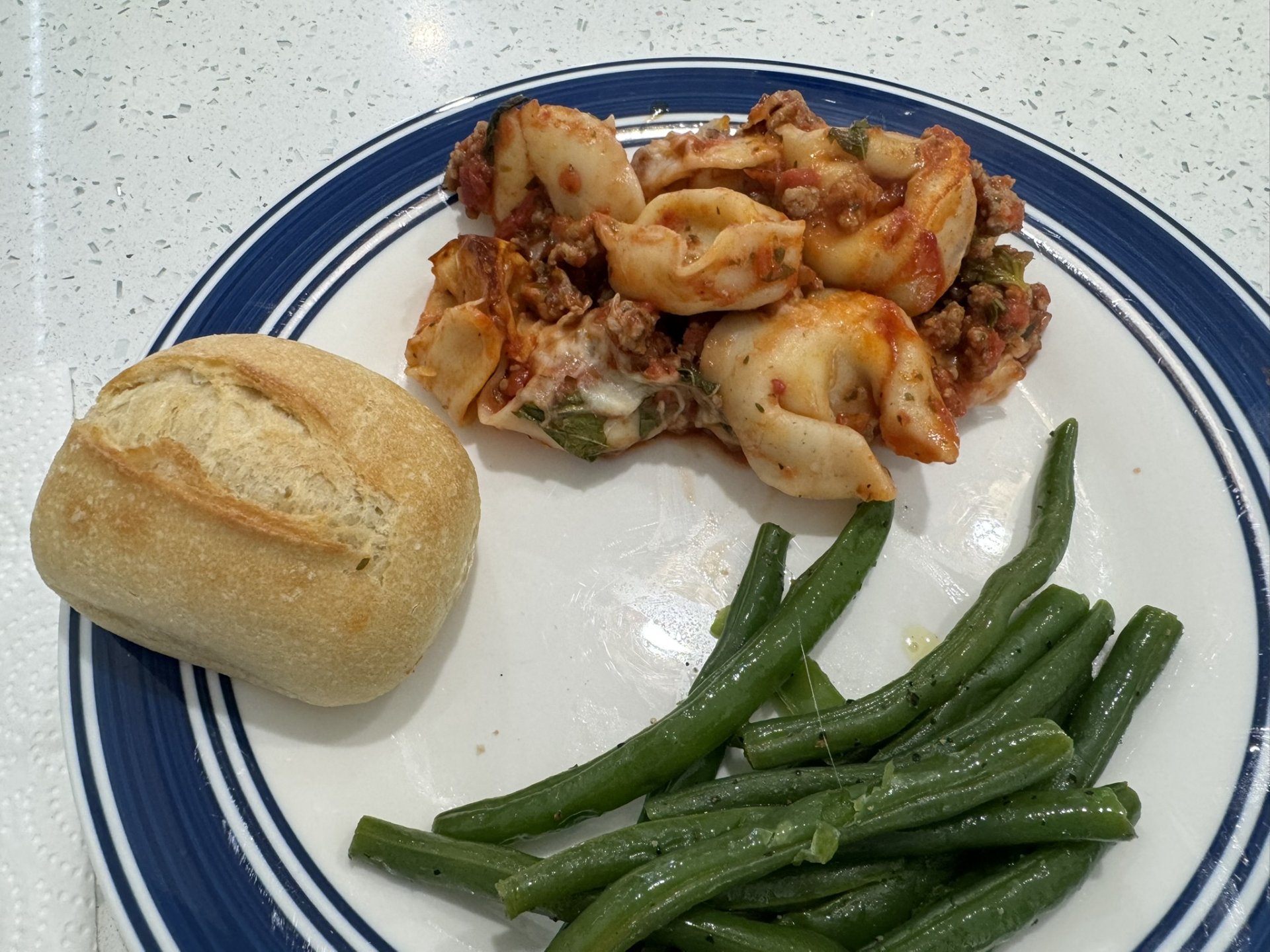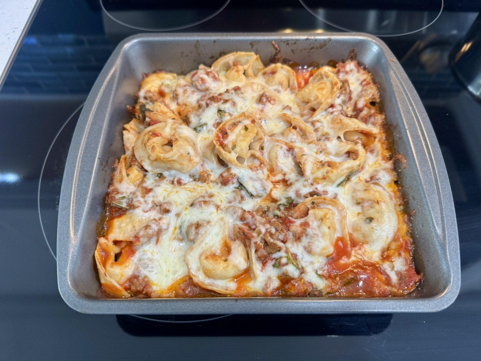 Transfer the tortellini mixture into a greased 9x13 inch baking dish.