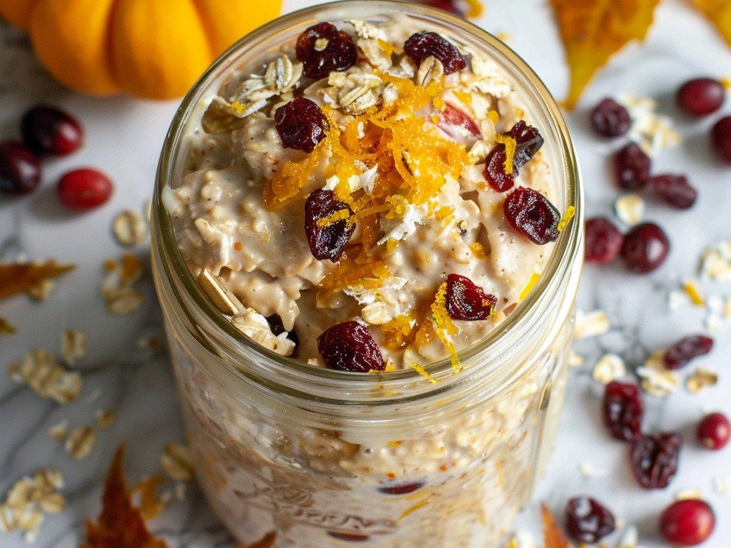 In a jar or bowl, mix oats, milk, cranberries, oranges zest, honey and vanilla extract.