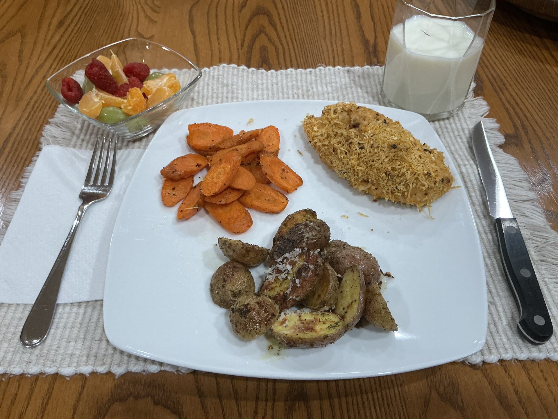 Dredge the chicken breasts in the egg and milk mixture and then place in the bag with the saltines and seasonings. Add two at a time to avoid over-crowding. Shake well to coat.