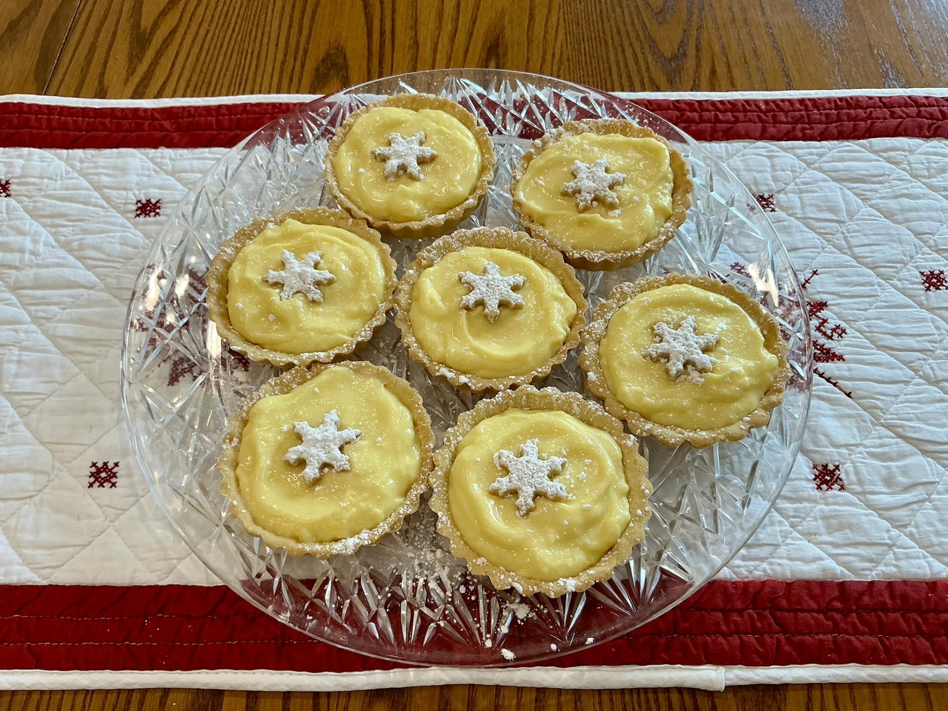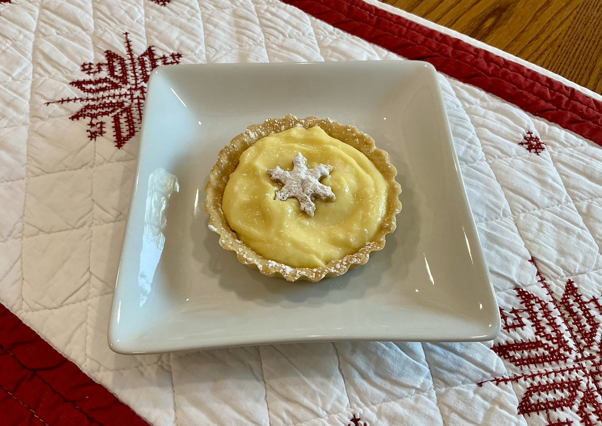 Assemble Tarts: Spoon chilled lemon custard into baked tart shells. Place one snowflake cookie gently on top of each tart. Dust again with powdered sugar for a snowy finish.