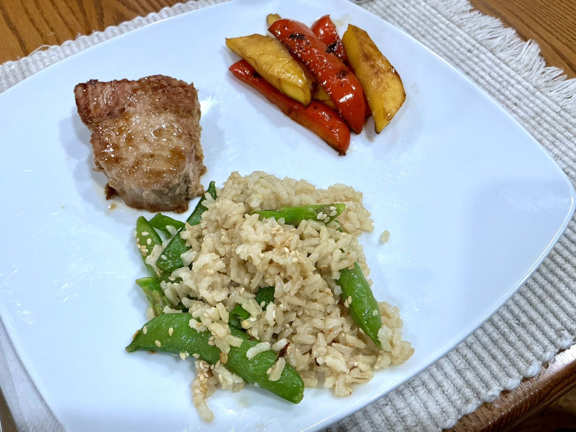 I like to serve with my Sesame Snow Pea and Asparagus Rice (South Beach).